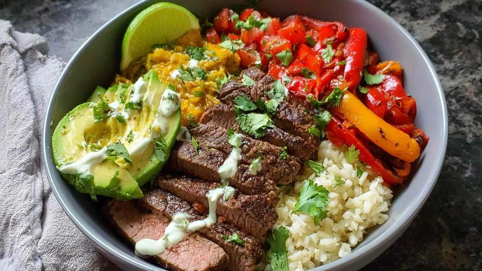 - Assemble the bowl: Start with a generous mound of cauliflower rice, top with the sautéed peppers and onions, then arrange the steak strips on top. Finish with a squeeze of fresh lime, a sprinkle of chopped cilantro, and a dash of hot sauce if you like an extra kick.